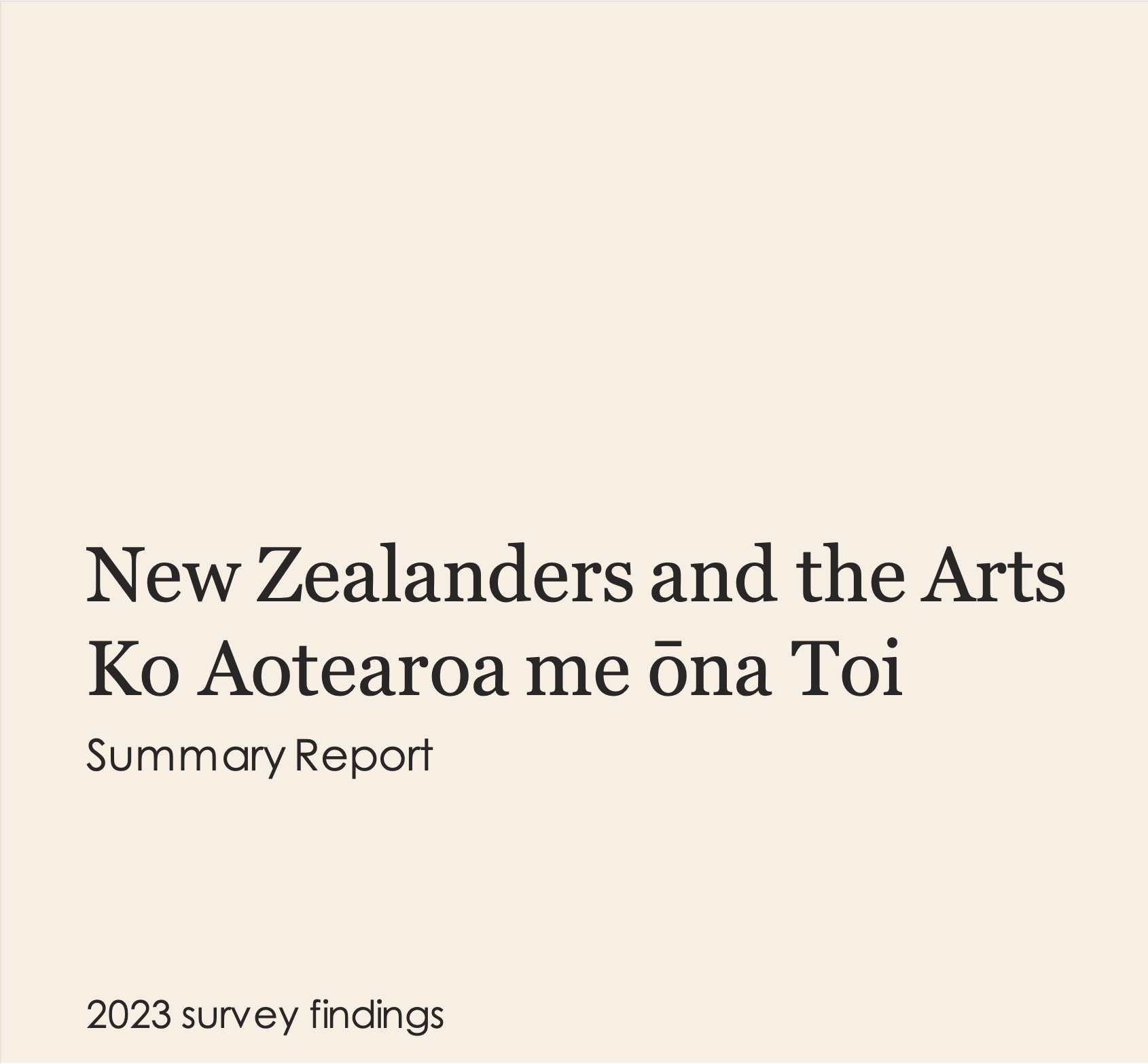 New Zealanders and the Arts Ko Aotearoa me ōna Toi Summary Report 2023